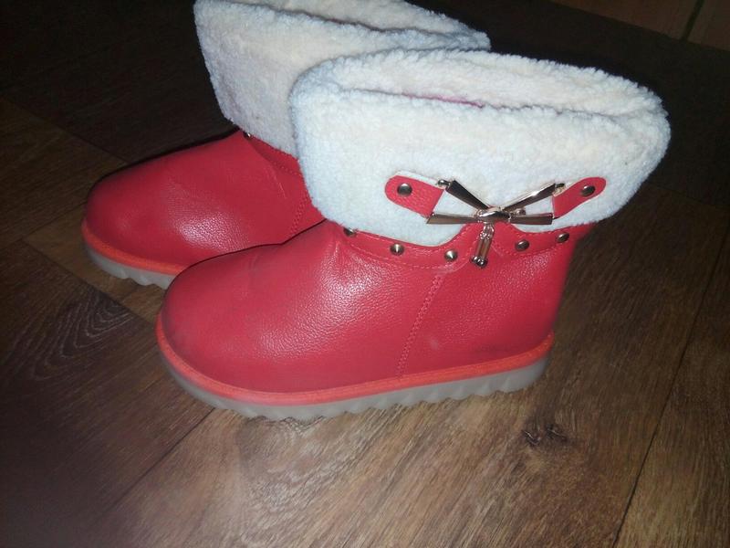 Зимние сапожки на девочку, в наличии несколько размеров, стельку спрашивайте. Цвет красно-оранжевый