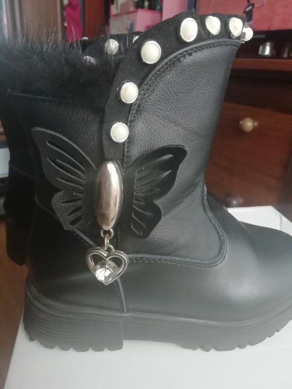 Чобітки для дівчинки. Розмір 28 - 17 см по устілці. Стан на фото. Є царапинка на правому чоботі, на останньому фото дивіться. Видно тільки якщо дивитися з близька, на ніжці мало помітно . В іншому все відмінному стан Замочки робочі, все перлинки на місці, хутро норочка не затертий. Всередині утеплені є маленький каблучок Носили мало, так як була ще взуття на зміну. Підійде на худеньку або середньої повноти ніжку. Якщо залишилися питання ,пишіть.