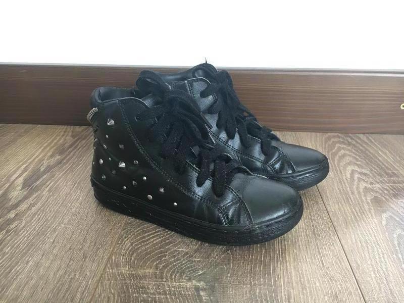 Ботинки Geox 31р. По стельке 18,5см. В хорошем состоянии, но есть потёртости. Всередине легкий утеплитель. Снаружи и стелька - кожа. Они мягкие и удобные, хорошо сгибаются. У нас худенькая ножка - то отлично по модели подошли. Все заклепки и декоративные кнопки на месте. Замок работает хорошо.