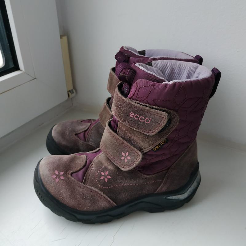 Зимние кожаные ботинки Ecco Gore-Tex 27 размера, стелька 17.5 см. от края до края, смотрите замер на фото. Материал верха мембрана, непромокаемый материал, натуральная замша. Липучки липнут хорошо. Без изьянов и нюансов, очень хорошее состояние.