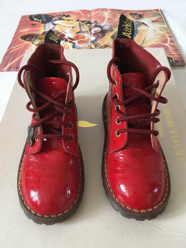 Оригинальные демисезонные ботиночки лакированная кожа(ньюанс-на изгибах трещинки)на фото видно,по стельке-17,5см