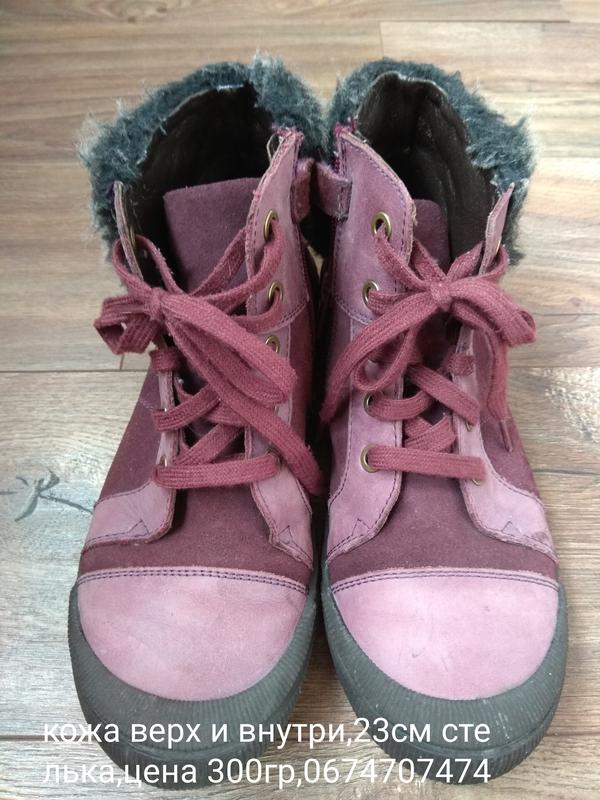 повністю шкіряні зверху і всередині черевика з обробкою з мистецтв.хутра,розмір 36(стелька23,5см)