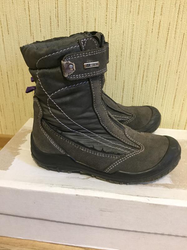 Продам теплі черевики - чобітки, по устілці 19 див. Стан на фото, підошва поліуретан. Комбінований верх із натуральної замші та мембранної тканини, не промокають, вгорі прилягають щільно до ніжці і не бовтаються., фіксуються липучкою. Дуже зручні, стильні і теплі. Відповім на всі питання