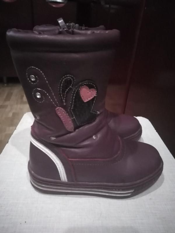 Продам зимові чобітки у відмінному стані, шкіряні. Купувалися дорого. Довжина устілки 19 см, довжина чобіт без підошви 18 см, обхват у верху ноги 28 см, ширина стопи 8 див. Біля замку трохи потерлися.