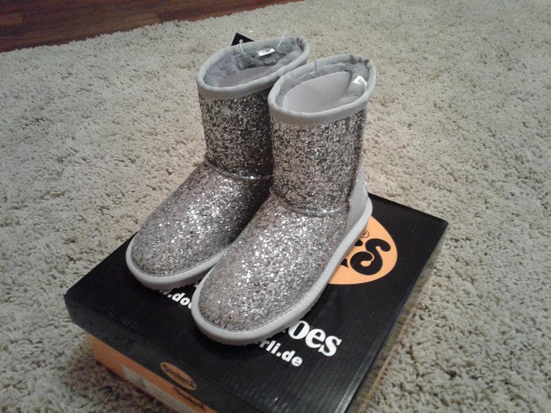 Новые красивенные угги для принцессы. Теплые, удобные, легкие, уплотненный задник (не стаптывается), подошва нескользячка. В 32 размере длина стельки около 21 см. Есть 37 размер в разделе женская обувь. Цена одинаковая.