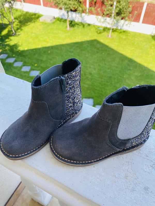 Повністю шкіряні черевики,27 р,замша,довжина устілки 16,5 см,висота задника 9 см,на невисокий підйом і вузьку ніжку