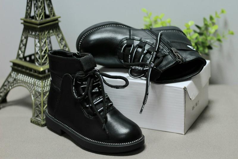 Стильні легкі черевички! Відмінна якість! Еко - шкіра Всередині фліс Устілка фліс Збоку замок,шнурівка. Устілка всередині в см: р. 27-18 см-1 п р 29-19 см-1 п 15+