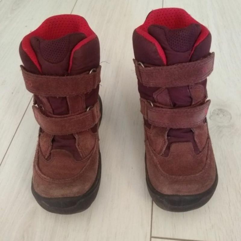 Черевики в хорошому стані. Ніжки не мерзли навіть у найбільші холоди, не промокають. З нюансів - втрата кольору на носках трохи (світліше). Липучки тримають міцно. Черевиками залишилися задоволені, фірма говорить сама за себе. Довжина устілки 16.5