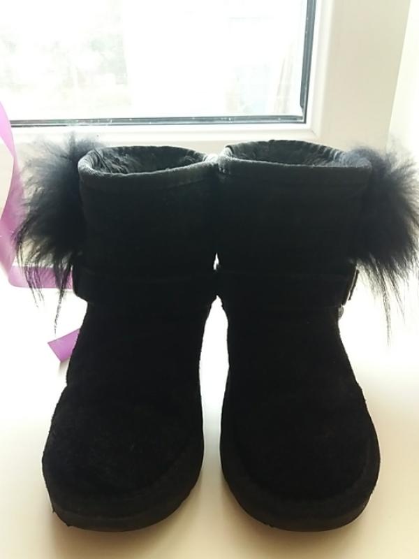 угі на дівчинку, натуральний замш, дуже теплі. відходили одну зиму, ходили тільки в гарну погоду. (устілка 17 см) з зовні оздоблені натуральним хутром. купували за 900 грн.