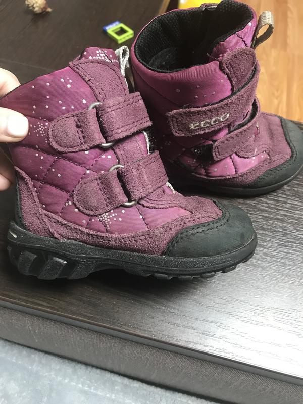 Детские зимние сапоги Ecco Размер 22 Длина стельки на фото Состояние как на фото * Мембрана сохраняет тепло,выводит влагу. * Застежки - липучки * Можно регулировать по полноте ноги * Съемная войлочная стелька * Высокая износостойкая подошва * Легко чистить Лёгкие, удобные,тёплые, плотно сидят на ноге. Ножка не потеет,не мёрзнет.