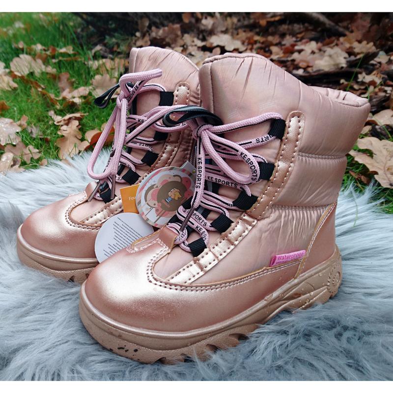 Зимові термо черевики ТЕ.M для дівчаток у золотистому кольорі ! У моделі : ✔️ потовщена нековзна підошва ✔️ всередині утеплені натуральною овечою шерстю з домішкою штучних волокон ✔️ укомплектовані знімною хутряний устілкою ✔️ цілісна конструкція черевичок добре зберігає тепло дитячих ніжок ✔️ збоку блискавка для зручного взування 27-32 рры