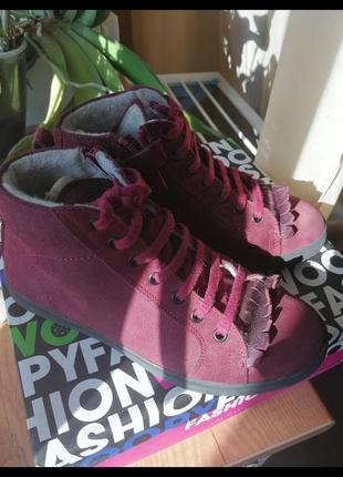 Демісезонні ботінки для дівчинки. Розмір 34.Утеплені. Отропедична устілка. Носилися один сезон, швидко зростала ніжка.Стан дуже гарний, шкарпетки не стерті. Із недоліків надірвався язичок на задніку, на фото вказала.
