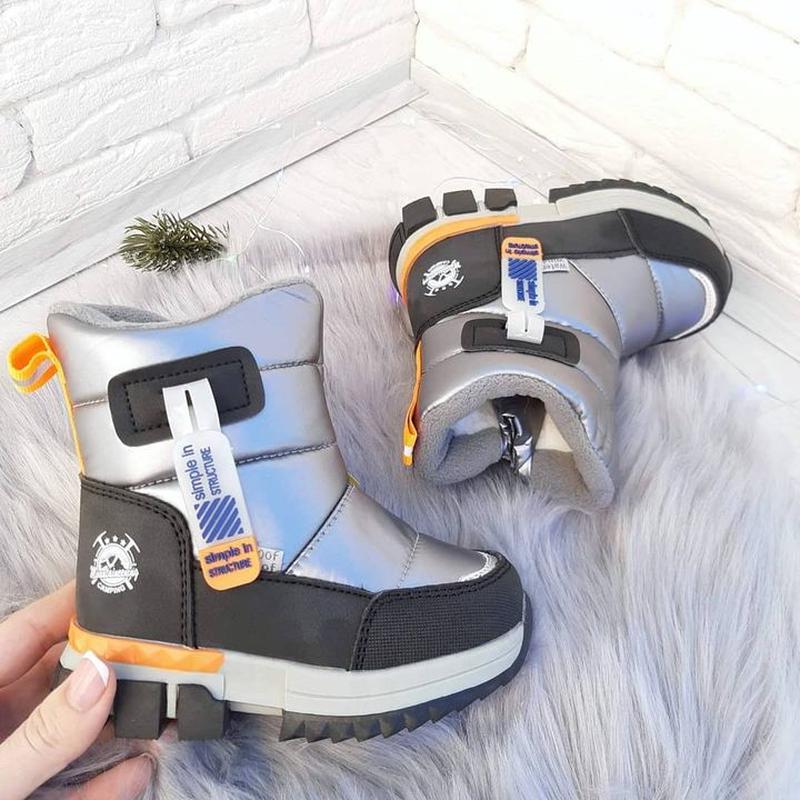 Круті термо-дутіки для маленьких ніжок. Модний дизайн не лишить Вашого малюка без уваги, а термо-ефект залишить ніжки в теплі і комфорті. Дуже теплі, до - 30 Всередині набивна овчина (60%) Збуку блисківка, є захист від потрапляння снігу. Термо-підошва Верх вітро і довонепроникний. Елементи декорацій міцно закріплені Якість - бомба Розміри : 23 - 15 см 25 - 16,5 см 2 шт 26 - 17 см 2 шт 27 - 17,6 см Вони унісекс, підходять і на хлопчика і на дівчинку