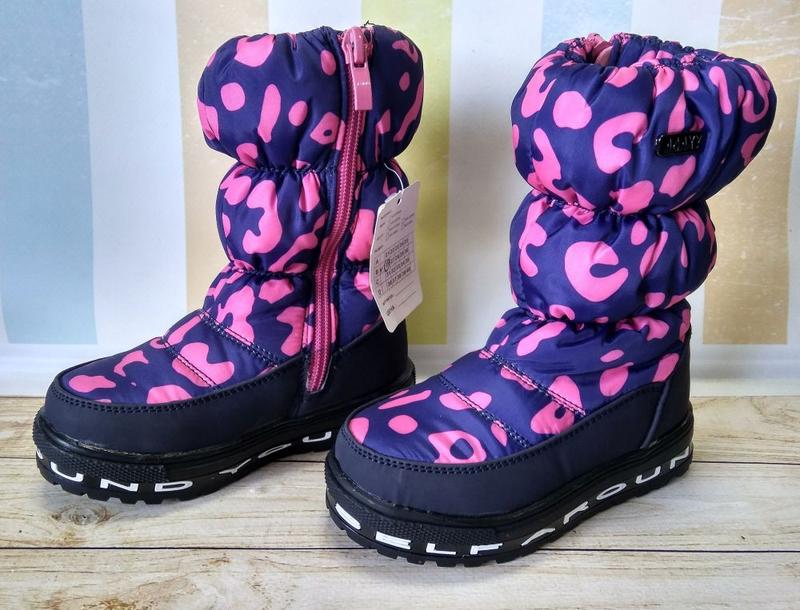 Яскраві зимові термо чобітки-дутики для дівчаток - легкі, зручні та теплі! ✔️ всередині утеплені добротним штучним хутром по всьому периметру. ✔️ перевага штучного хутра в тому, що він гіпоалергенний і не скочується. ✔️ чобітки мають бічну блискавку, взуваються легко і швидко. Модель маломерит - зверніть увагу на розмірну сітку. Розмірна сітка з даної моделі: РОЗМІР ДОВЖИНА УСТІЛКИ 26 розмір 15,5 см - відповідає 24 рру 28 розмір - 17 см - відповідає 27 рру