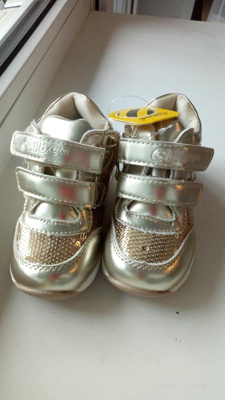 Золотисті черевички Clibee на дівчинку. Ортопедична устілка з супінатором, верх - кожзам, всередині - текстиль. Фіксується на дві липучки, твердий носочок. Розмір - довжина устілки: 20 розмір - 13см; 21 розмір - 13,5 см; 22 розмір - 14см. Оплата на карту. Відправка НП, Укрпоштою. Наложкой відправляю з передоплатою 100грн.(вартість доставки в обидві сторони).