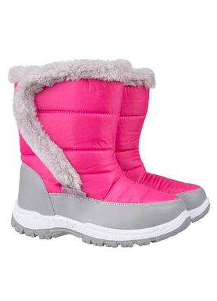 Зимние сапоги английского производителя недорогой, но качественной одежды и обуви - Mountainwarehouse В наличии размеры: US 12, EUR 29 - стелька 19-19,5 см US 2, EUR 33 - стелька 21-21,5 см Характеристики: Snowproof - прочный текстильный верх из водостойкой ткани, что делает сапоги непромокаемыми Fleece Lining - флисовая подкладка (Sherpa fleece) - сапоги очень теплые и уютные High Traction Sole - высокая подошва с глубоким протектором, сапоги не скользят Стелька съемная