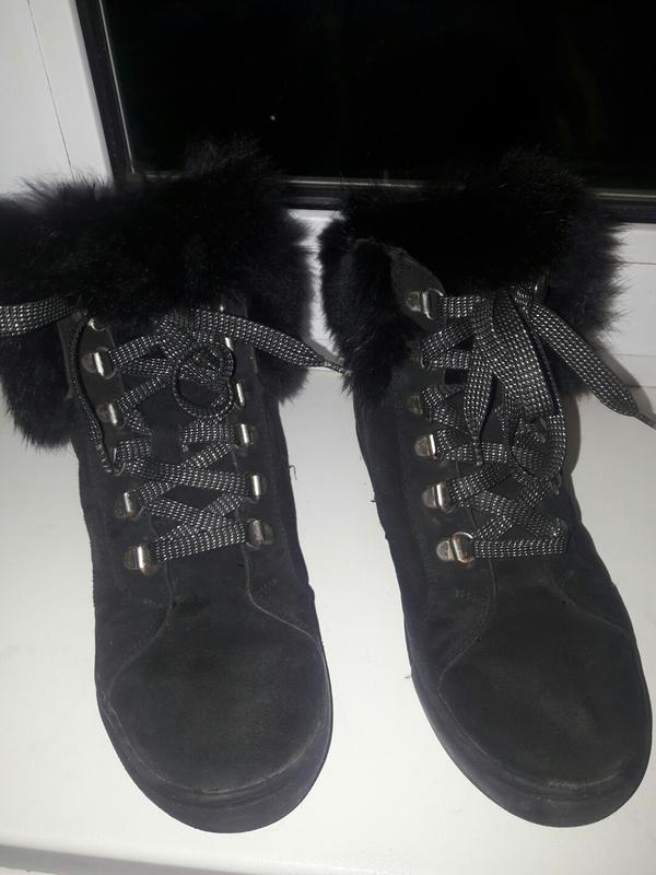 Черевики натуральний замш, на зиму, всередині утеплені, купували в магазині Clark's, 36 розмір 22 см устілка, з натуральним хутром, на одному трішки витерлось, але при носінні це не видно. Ножки не будуть мерзнути.