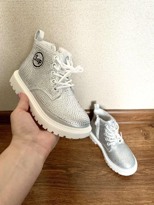 Дуууже гарні черевички вже в наявності👌 •верх еко-шкіра прикрашена стразами •легкі і дуже гнучкі •кожна пара індивід.коробочці •присутній бічна блискавка •утеплені плюшем 27 розмір 16 см 28 розмір 16,5 см 29 розмір 17,5 см 30 розмір 18 см 2 пари 31 розмір 18,5 см 32 розмір 19 см