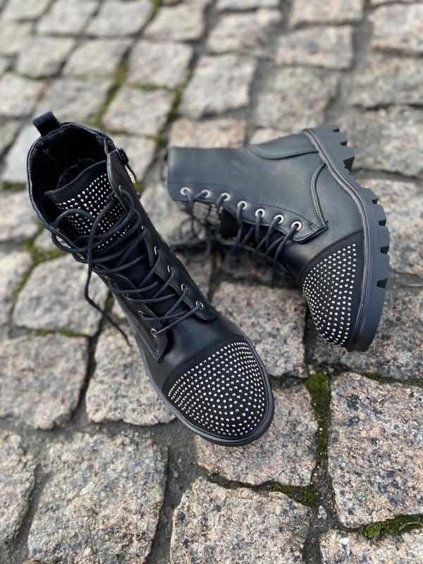 Черевики демісезонні.Виконані з екошкіри та штучної замші,носик та язичок оздоблені камінчиками !Шнурівками можна відрегулювати повноту ноги,також присутній боковий замок! В наявності розміри: 31-20 см 34-22,2 см 35 - 22,7 см