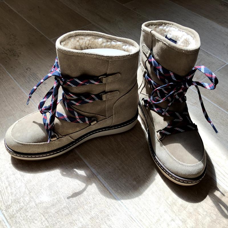 Симпатичні нові черевики Tommy Hilfiger на осінь/зиму із замші, на шнурівці. Зроблені з якісніх матеріалів. На шкода не підйшли по розміру і колодці то ж стояти неношені. По зазначеному розміру 37, однак, мені виявились затісними. Давала міряти дівчатам з 36тим і їм вони також стискали ногу, однак більше по ширині. То ж скоріше все таки мають підійди на дитячу або на вузьку тендітну жіночу ногу. Буду рада, якщо нарешті знайдуть свою власницю :)