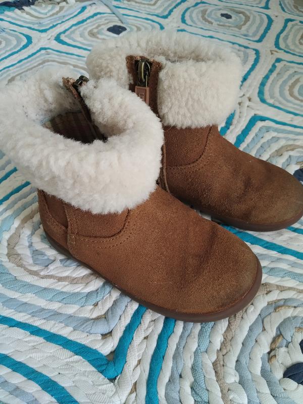 Зимові утеплені чобітки з натуральної тисненій шкіри, оброблені овечою вовною. Устілка - овеча вовна, підклад - овеча вовна, підошва прогумована висотою 1.5 див. ніжки Теплі - запорука здорового малюка. Виміри: висота-12 устілка-16