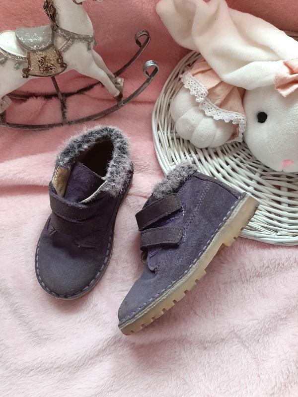Замшевые ботинки на липучках с мехом.