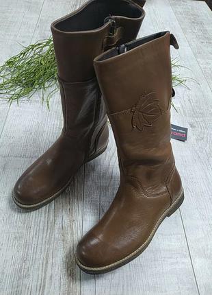 Сапоги оригинал. Выполнены из нат. кожи, подкладка нат. кожа, стелька ортопедическая из нат. кожи, подошва полиуритан. Длина стельки 22,5 см. Кожа очень мягкая. Полная высота 29 см. Полуобхват голенища 15.5 см. Без дефектов.