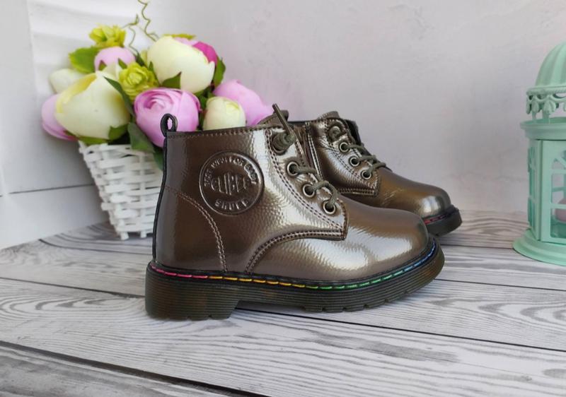 Стильні черевики Осінь 2021 Верх - екокожа(лак) Утеплюють мікрофлісом . Устілка перфорированая, анатомічна. Збоку на блискавці.Фіксація на шнурівку. Легкі і зручні. Жорсткий задник. martina 26р-16 см 27р-17 см 28р-17.5 см 29р-18 см 30р-18.5 см