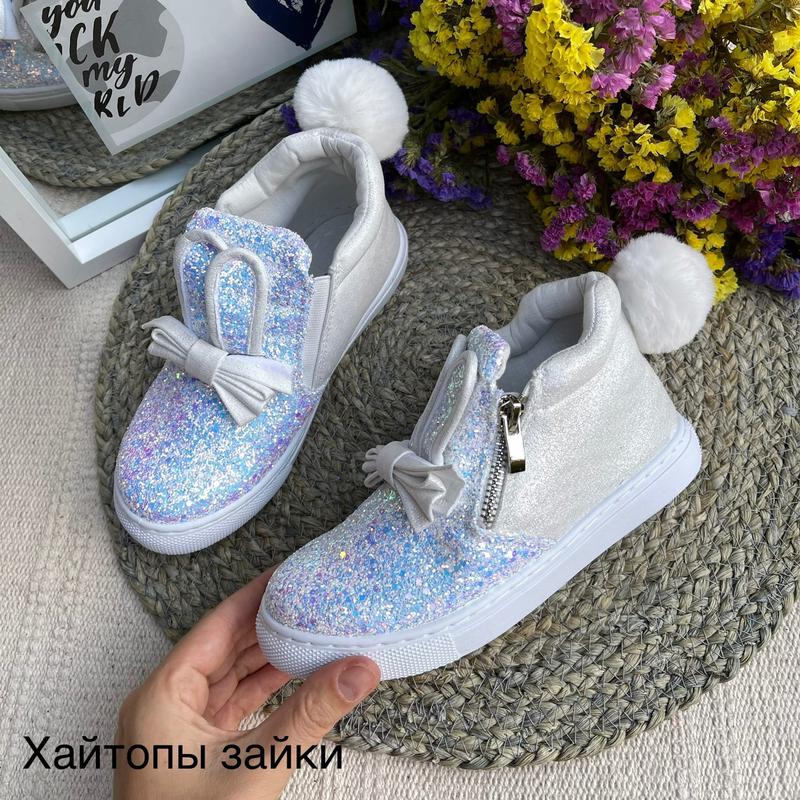 Ніжні хайтопы з вушками і отстежным хвостиком! Верх-глитер і екошкіра високої якості з лазерним напиленням. Підошва - гума. Устілка – шкіра. Застібка - змійка. ✔ Розміри: 31- 19,4 32- 20,**********,2 35- 21,8 36- 22,5.крох