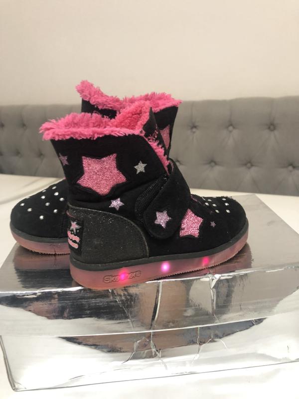 Черевички у відмінному стані, обидва ботиночка світяться, липучки добре тримають. М'які і легкі, досить теплі. Нюанси на носочках показала на фото.