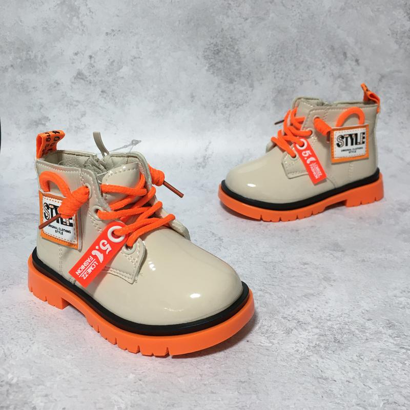Неймовірно стильні та яскраві черевички для маленьких модниць🧡 Виповнені з якісної еко шкіри. Середина утеплена флісом. Устілка тут шкіряна ортопедична. Присутній замочок та шнурівка для зручного взування та гарної фіксації на ніжці. Легенькі. На ніжці виглядають🔥