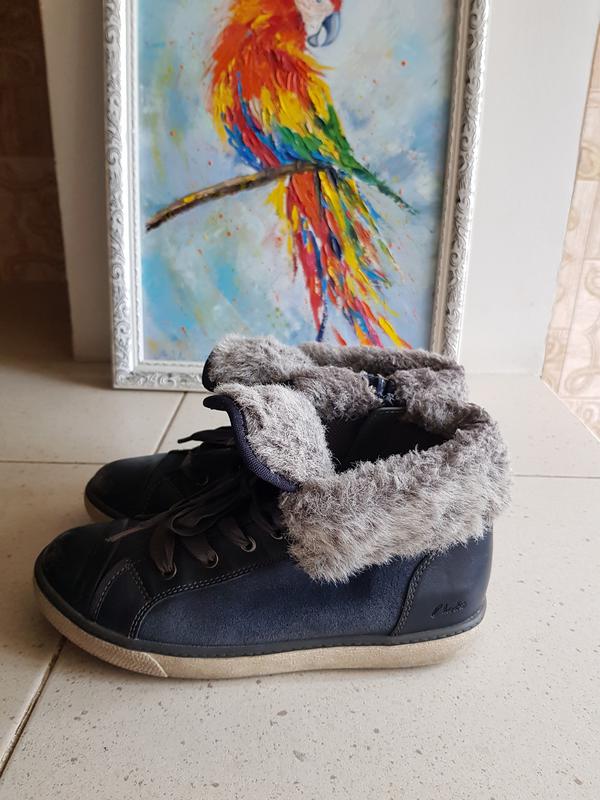 Ботинки Clarks, длина стельки 22,5-23 см. Темно-синего цвета, кожаные.