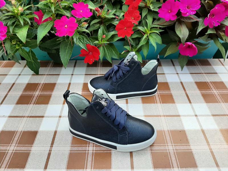 Колір: Темно синім із перламутровим відливом. Дуже легкі. Збоку змійка. Матеріал зовнішній якісний шкір.зам. На язичку черевика є оригінальна прикраса — дуже красивий жучок 26р.по устілці 17.7 см