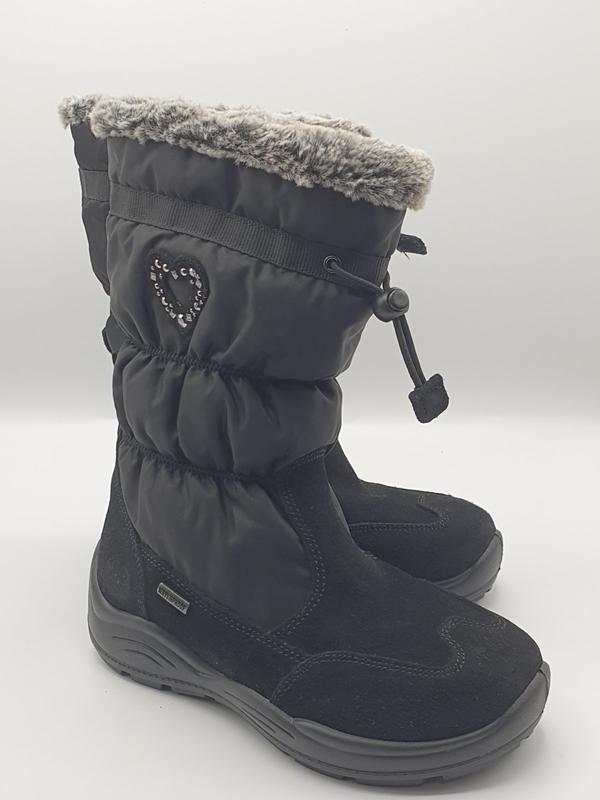 Теплі чобітки для дівчаток. Водонепроникна поверхня, верх-шкіра натуральна замша, середина утеплена штучним хутром, підошва-гума та інші матеріали.