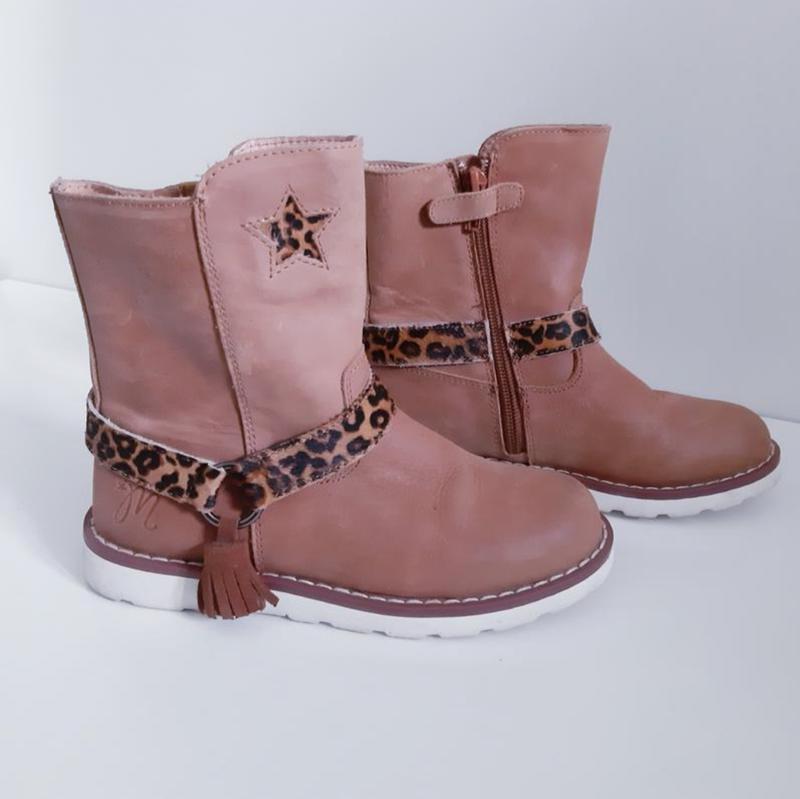 Стильні, класні чобітки, зовні і всередині шикарна шкіра. нові , є 1 нюанс, на собачці відламана штука, за яку тримають( не знаю як вона правильно назвается). Устілка близько не менше 20.5 см, важко точно виміряти.