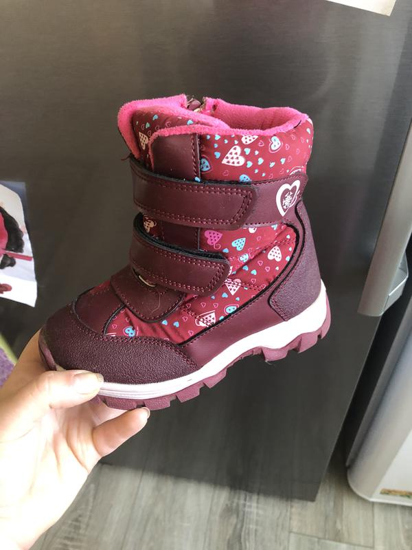Зимові чобітки в ідеальному стані, дуже тепі, зручні, мають замочок та липучки які регулюють повноту ніжки. Рзмір 28 довжина устілки 18см