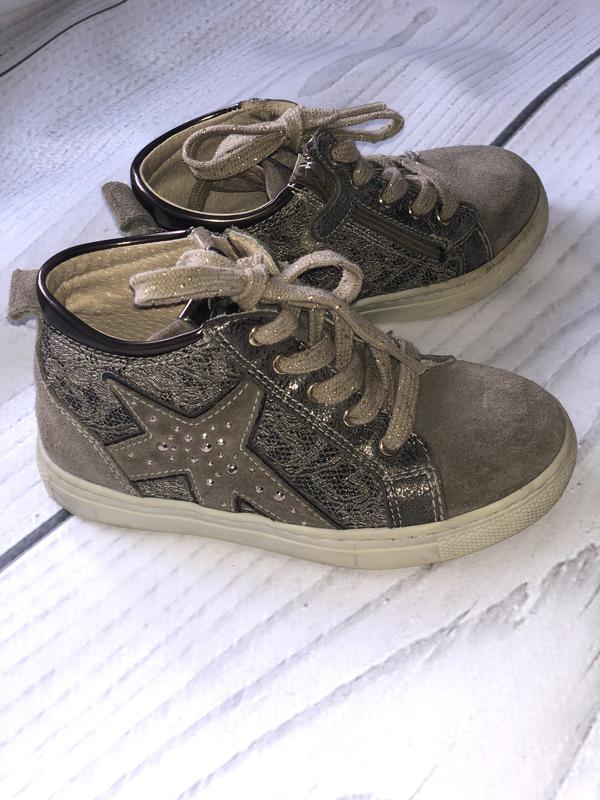Дуже красиві і якісні черевички на дівчинку.Зовні і всередині шкіряні.25 розмір.довжина устілки 16,5 см від краю до краю.в дуже хорошому Стан. Привезені з Італії.виробництво теж Італія