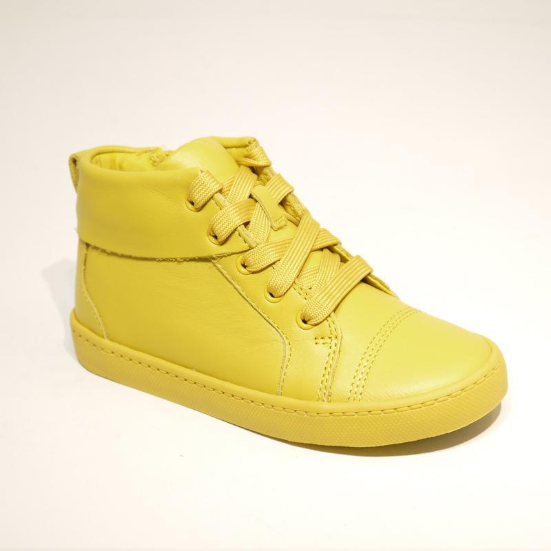 Снаружи качественная натуральная кожа желтого цвета Очень мягкие. Внутри текстиль Плотный задник. застежка - внутренняя змейка, дополнительная фиксируются шнурками подошва резиновая, облегченная 12/30 по стельке 19.5 см