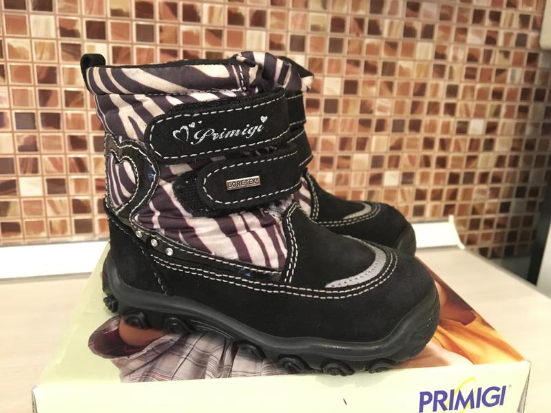 Зимние ботинки Primigi для девочки с мембраной Gore-Tex. Из нюансов: потертость на текстиле под нижними липучками.Это видно только, когда поднимаешь липучки.Верх-замш, нейлон.Внутри-флис.Стелька 14,5 см