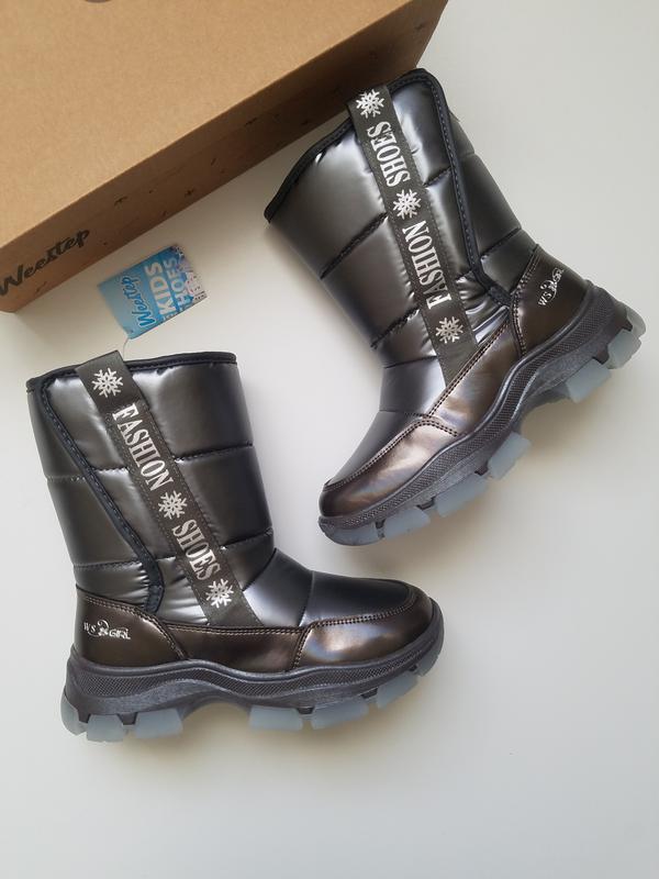 Зимові дутики від Weestep для дівчат в графітовому кольорі. Дуже теплі, зручні та стильні. Верх виконаних з вітро та водо непроникної тканини. Всередині щільно набивна овчина. Максимально теплі для зимових холодів. 34 р - 22 см 37 р - 24 см ( 2 шт )