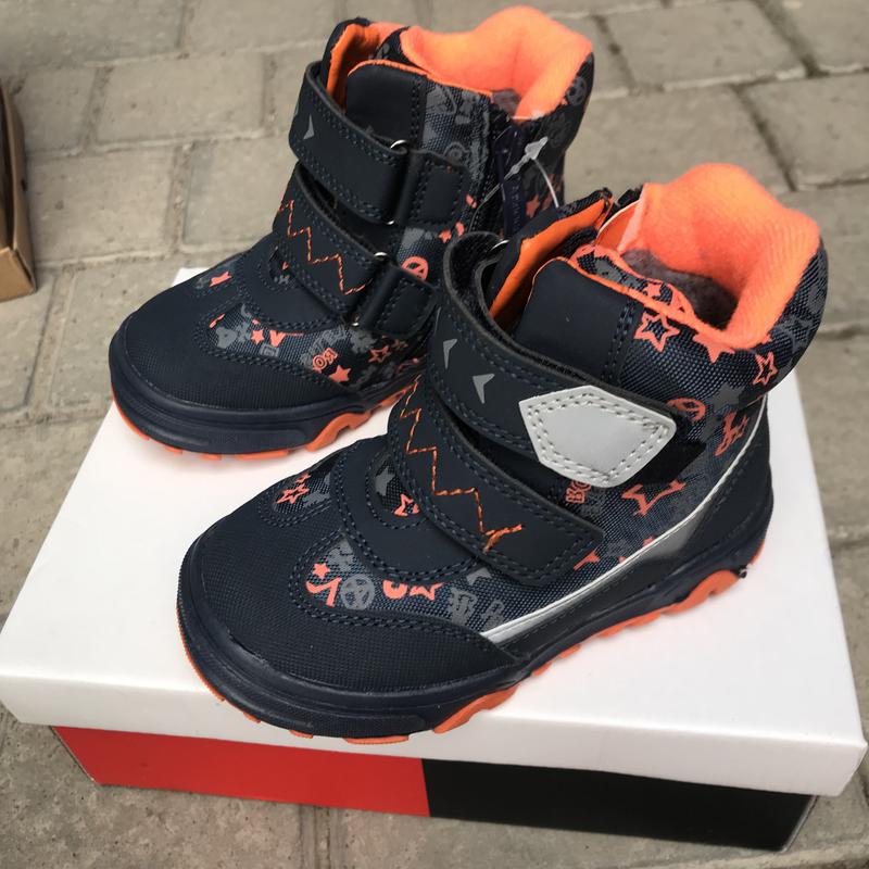 Верх водовідштовхуюча мембрана, посилення та п'ятка, є дві ліпучки та блискавка, утеплювач-штучне хутро. Виробник Apawwa.Заміри: 23-14,5 см 26-16 см