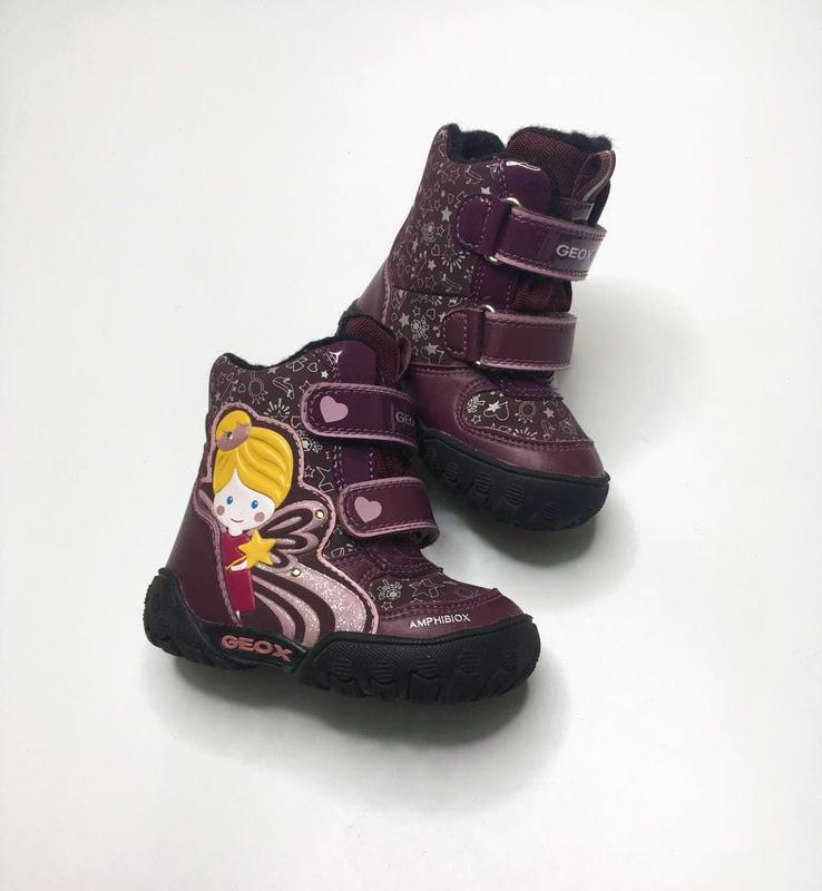 Ботинки GEOX. Б/у в идеальном состоянии. ✔️ Geox Respira- перфорированная подошва с прочной, воздухопроницаемой и водоотталкивающей мембраной. ✔️ Amphibiox- технология, обеспечивающая водонепроницаемость и защиту от грязи, дождя и снега. ✔️ Двойная застежка-липучка. Производство Вьетнама. Верх - полиуретан, внутри теплый текстиль. Размер 20, длина стельки 12.9 см. Доставка Новой Почтой или Justin. Возврат не предусмотрен.