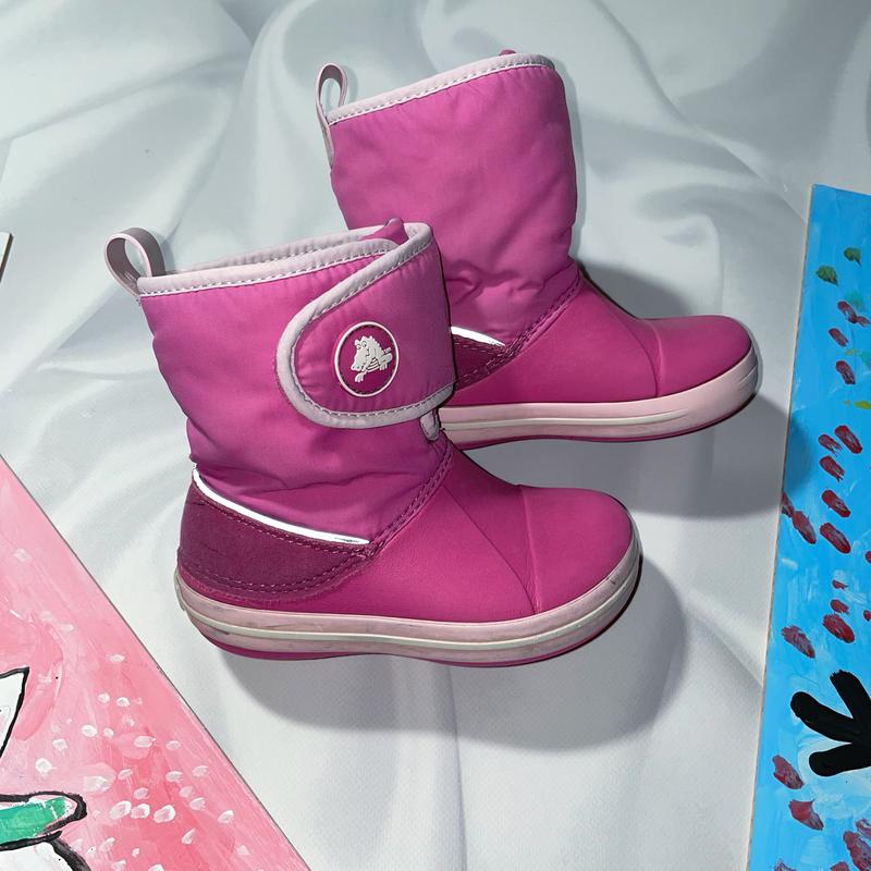 Зимние сапоги Crocs (оригинал). Размер С10, длина стельки 17 см. Состояние хорошее. Верхняя часть обуви с мягкого нейлона и теплого наполнителя, благодаря этому они очень теплые. Основа из материала CrosliteTM делает их невероятно легкими и комфортными. Они не промокают, ваши ноги всегда будут теплые и сухие. На данный момент - это лучший вариант для прогулок во время дождя и снега. Температурный режим от +5С до -10С.