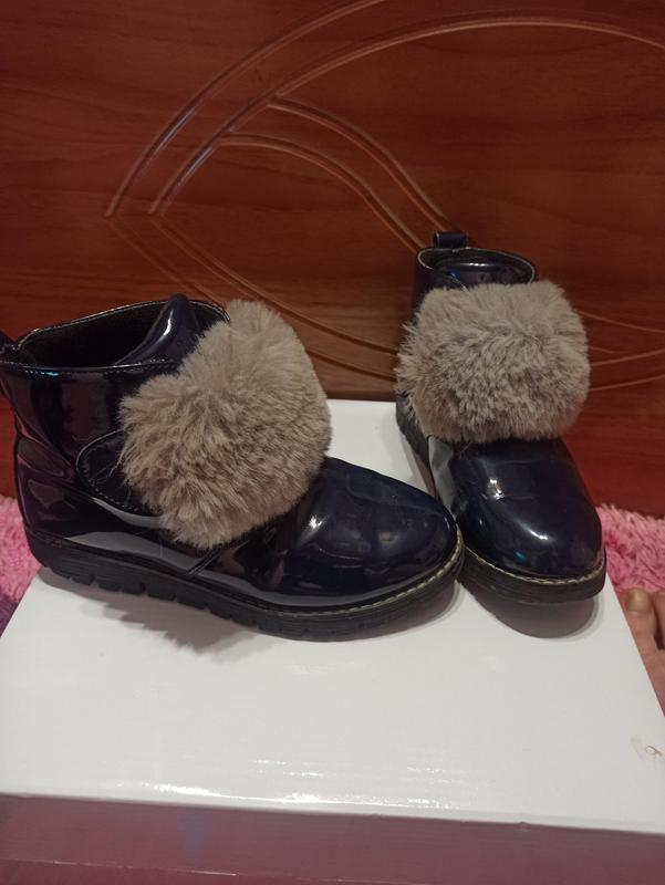 Лёгкие ботинки на баечке. Застёгивается на липучке,мех снимается если не нравится или дождь,хотя стирается идеально. есть небольшие царапин но поверхностные..на носку не влияет. рр33 по стельке 21 см