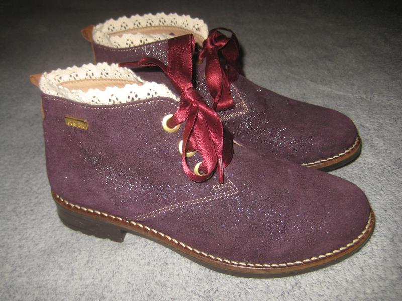 Шкіряні демісезонні черевики AGM оригінал (Portugal) — 36 розмір, за шкіряною устілкою — 23 см. Більшомірять, вказаний розмір 35. Зовні — натуральний замш, всередині — шкіра + текстиль. Устілка — шкіра. Подошва - полиуретан. Висота черевика — 11,5 см. Дуже легкі, м'які, зручні. Ідеальний стан. Ціна - 471 грн.