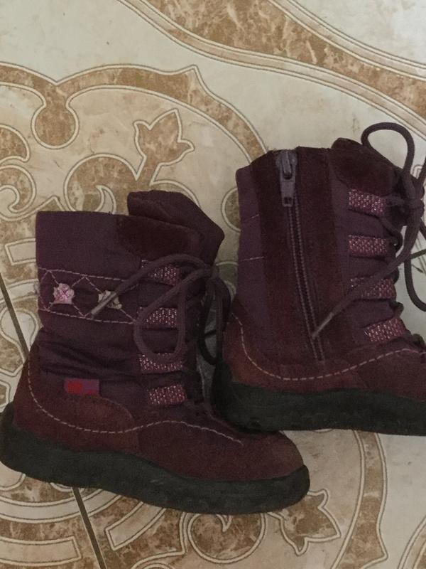 Продам зимові запожечки на дівчинку, розмір ніжки 22, сапожечки в дуже хорошому стані, після однієї дитини. Теплі, взимку взували їх на теплі колготки без носочка. Технологія gore tex.