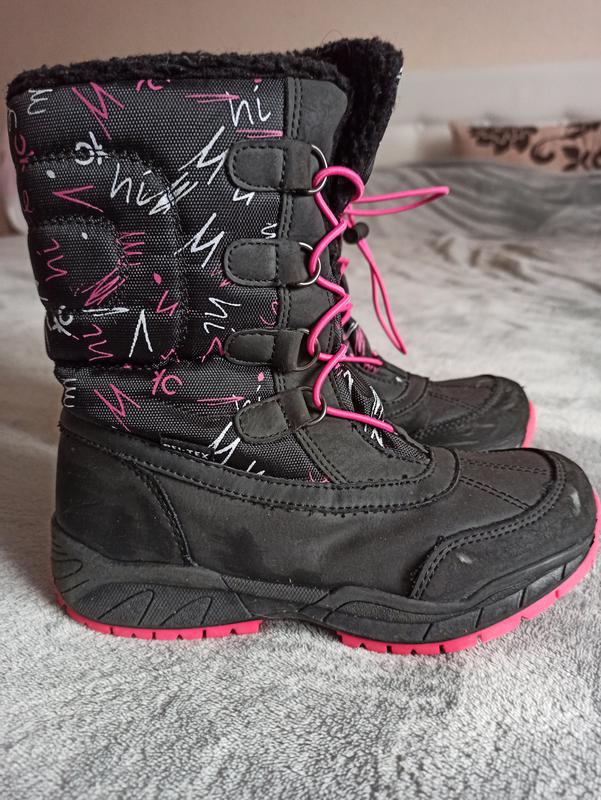 Теплі, зручні черевики для дівчинки. Устілка не виймається, +- 22см, розмір вказано 33 На блискавці і з захистом від попадання снігу. Подряпини на фото тільки виділилися, через світла - в реалі взагалі не видно їх.