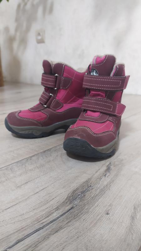 Легкі, зручні, водонепроникні, теплі термо черевики. В хорошому стані(є маленький дифект спереду) , липучки рабочии. Всередині фліс. Ми відносили зиму, ніжки завжди були теплі.