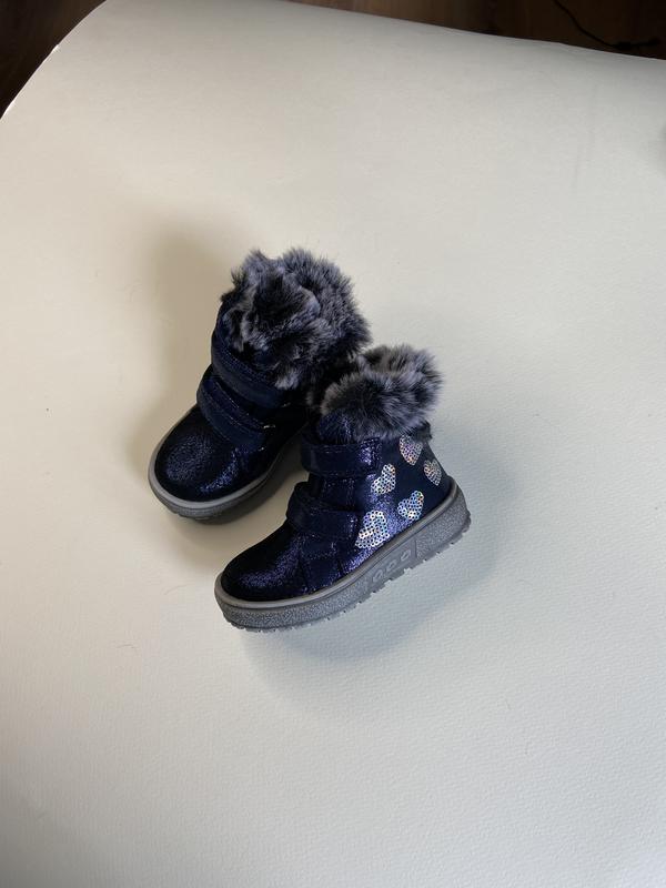 Ботіночки виготовлені з замша з напиленням, всередині натуральна овчинка, оздобленні хутром кролика! Зручна застібка збоку на замочку та дві липучки які щільно фіксують ніжку і дуже зручно при взуванні! Термокаучукова анатомічна підошва, антислизька!
