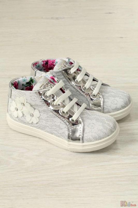 Приймаємо оплату карткою "Пакунок малюка". Оригінальна та дуже зручна модель черевиків для Вашої дівчинки. Модель виконана з ніжного сріблястого текстильного мережива. Декорована квітами.